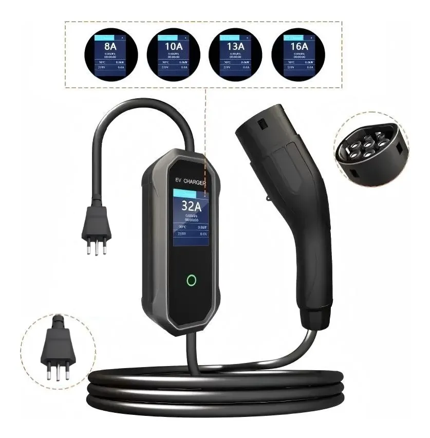 1. Plugue com certificação INMETRO diferencial real no Brasil O plugue possui certificação INMETRO, atendendo à norma brasileira ABNT NBR NM 60884-1 um diferencial importante frente à maioria dos portáteis importados que chegam sem esta homologação. Isso garante que a parte que toca a tomada brasileira está em conformidade com os padrões nacionais de segurança elétrica. 2. IP66 proteção superior à maioria dos portáteis A classificação IP66 garante proteção completa contra poeira e água, sendo projetado para qualquer clima, incluindo tempestades de chuva, neve ou poeira. Isso coloca o Infinity acima do Feyree (IP65) e de muitos portáteis genéricos com IP44 ou IP54, sendo adequado para uso em garagens externas sem cobertura. 3. Material UL94 V0 o mais resistente à ignição A classificação de inflamabilidade UL94 V0 é superior à da linha TAYSLA (V-2) da mesma fabricante, e acima do padrão de boa parte dos concorrentes. Este material para de queimar imediatamente ao remover a chama um diferencial real de segurança passiva em um equipamento que fica em carregamento por horas. 4. Cabo de 5 metros maior alcance entre portáteis O cabo de 5 metros oferece maior alcance e flexibilidade durante o processo de carregamento, permitindo uso com facilidade mesmo em locais com tomadas distantes do veículo um metro a mais que o cabo básico do Feyree, que tem apenas 3,5 m em algumas versões. 5. Bivolt automático com faixa ultra ampla A faixa de tensão de entrada de 80 V a 260 V é ideal para uso em locais com flutuações de voltagem, comuns em algumas regiões do Brasil, protegendo tanto o carregador quanto o veículo. Opera em 110 V e 220 V sem qualquer ajuste manual. 6. Corrente ajustável em 4 níveis Os quatro níveis de corrente ajustáveis (8A, 10A, 13A e 16A) permitem otimizar o carregamento de acordo com as necessidades do veículo e a infraestrutura elétrica disponível, sendo útil em instalações elétricas mais antigas ou com capacidade limitada. 7. Tela LCD com dados em tempo real O carregador é equipado com tela LCD que exibe informações sobre o status de carregamento e indicadores luminosos que sinalizam o progresso, recurso importante para monitorar a sessão sem depender de app ou notificações externas. 8. Garantia de 2 anos com suporte em português A garantia é de 2 anos, com suporte de uma equipe local de atendimento profissional que fala português do Brasil um diferencial considerável frente ao Feyree, que oferece apenas 3 meses de garantia em algumas listagens. 9. Levíssimo 1,95 kg Pesando apenas 1,95 kg, é leve e compacto, acompanhando uma bolsa de armazenamento prática — perfeita para o porta-malas do carro. É um dos portáteis mais leves da categoria no mercado brasileiro. 10. Plug-and-play sem configurações A funcionalidade plug-and-play elimina configurações complicadas, sendo perfeito para uso doméstico, viagens e longas jornadas. Basta conectar à tomada e ao carro para iniciar o carregamento automaticamente.