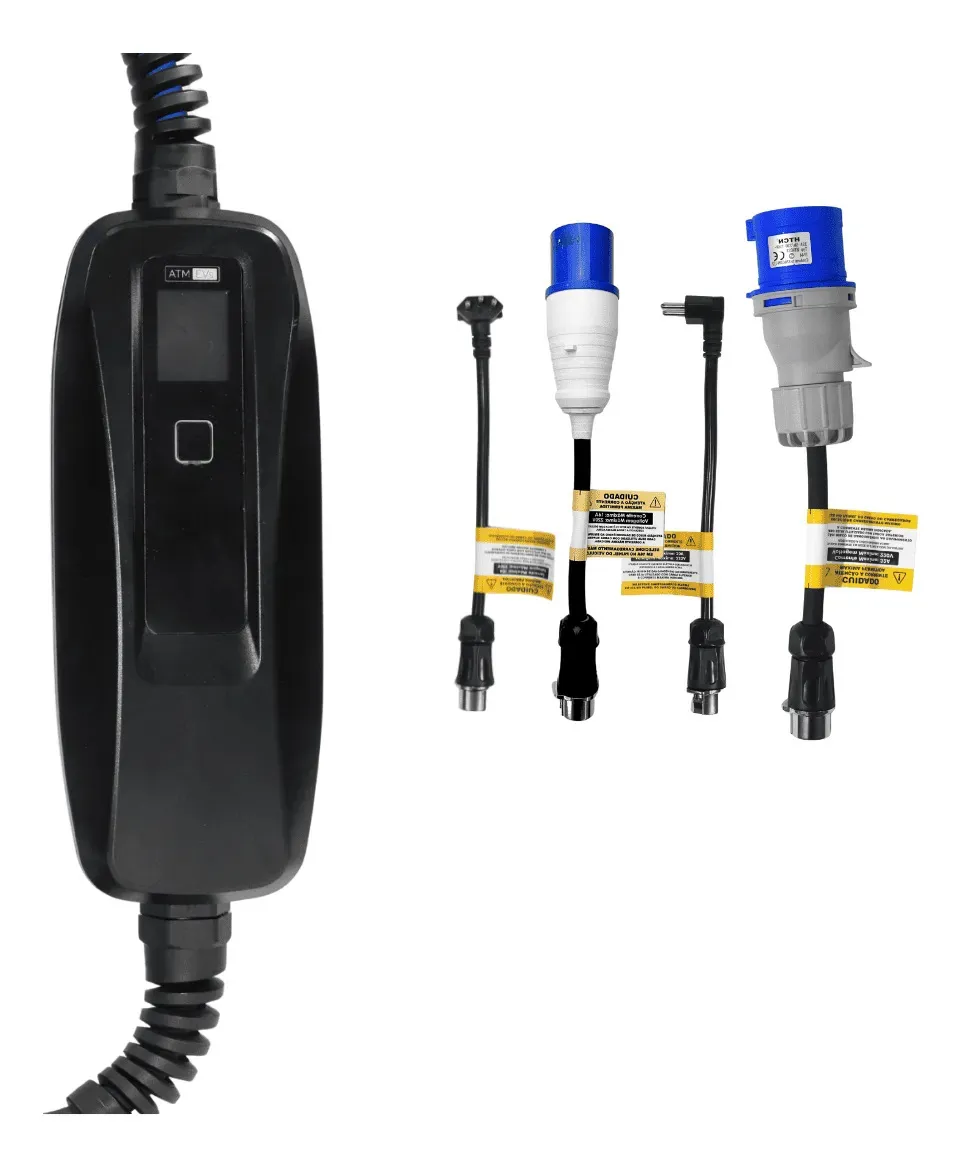 Carregador portátil Aiker 3,5 kW (Tipo 2, bivolt) Corrente ajustável: 8A / 10A / 13A / 16A (máx. 16A) Tensão: 230V (compatível com 110V) Tela touch de 2,8” com monitoramento em tempo real Proteção IP54 (água e poeira) Segurança: contra superaquecimento, sobrecorrente, sobretensão, subtensão e fuga de corrente Temperatura de operação: -25°C a +50°C Cabo: 5 metros Compacto, leve e portátil Acompanha bolsa de transporte Dimensões: 235 x 99 x 52 mm Garantia: 90 dias